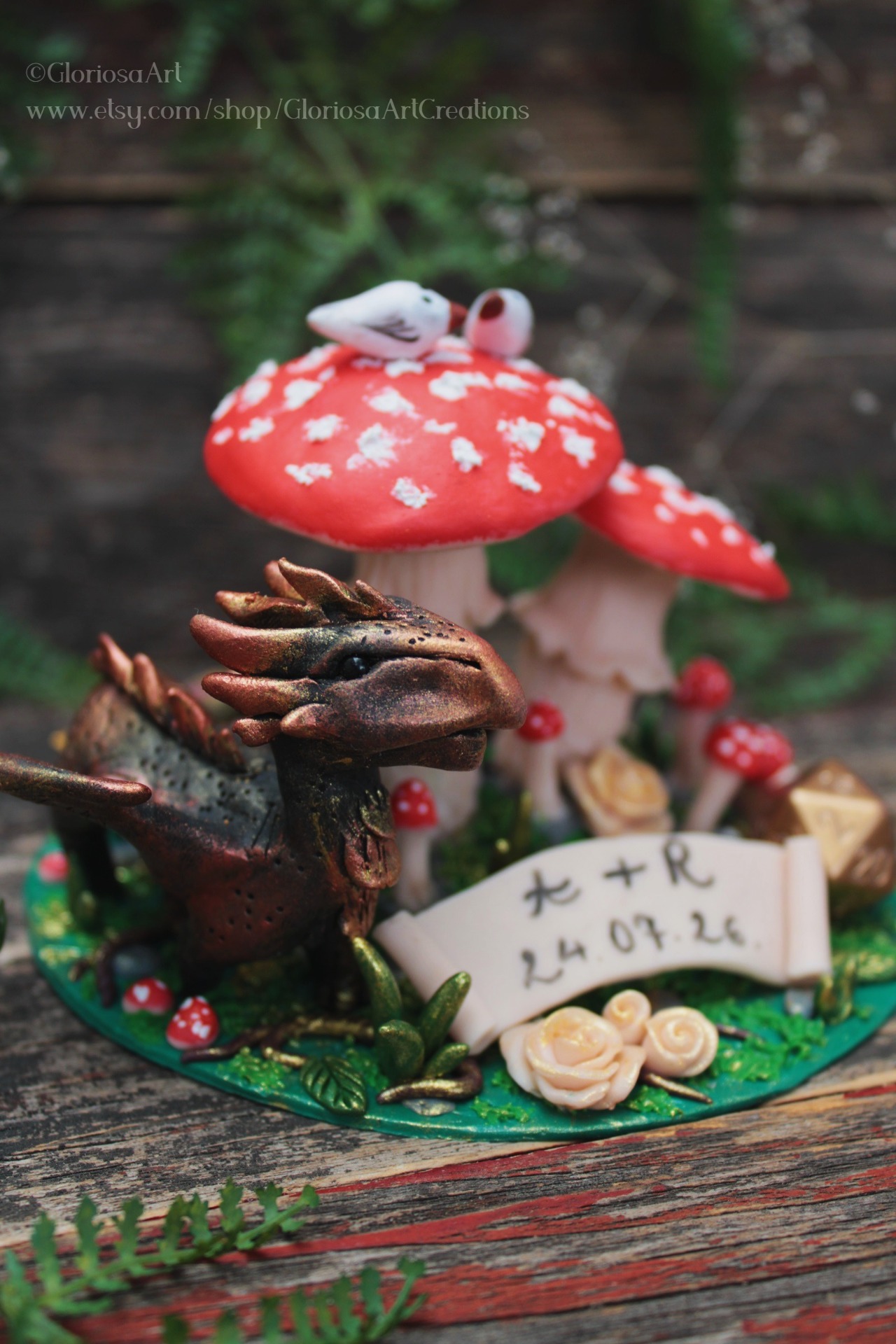 If you're dreaming of a magical celebration, this fantasy dragon cake topper might be the perfect finishing touch for your special day. Designed for fantasy weddings, Dungeons & Dragons themed parties, and woodland-inspired birthdays, this handmade cake decoration brings an enchanting forest scene to life.